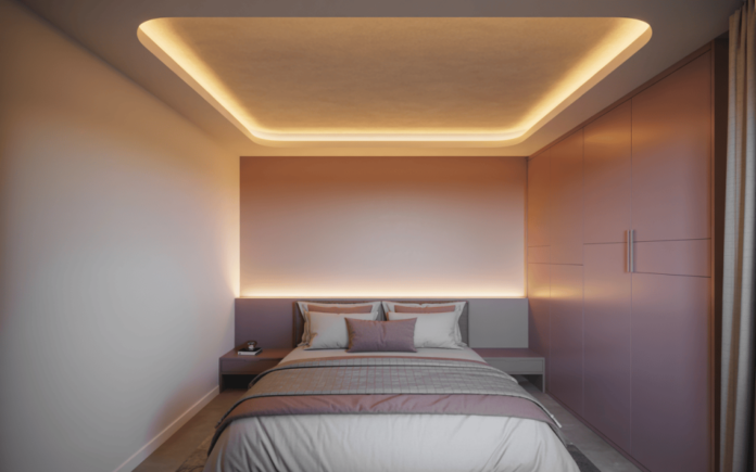 A well-lit small bedroom ceiling design 2026 makes the room feel larger and more comfortable.